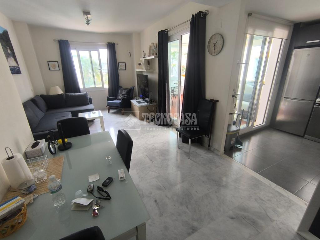 La urbanización dispone de piscina comunitaria y zonas comunes cuidadas, ideales para relajarse y disfrutar del clima de la Costa del Sol.